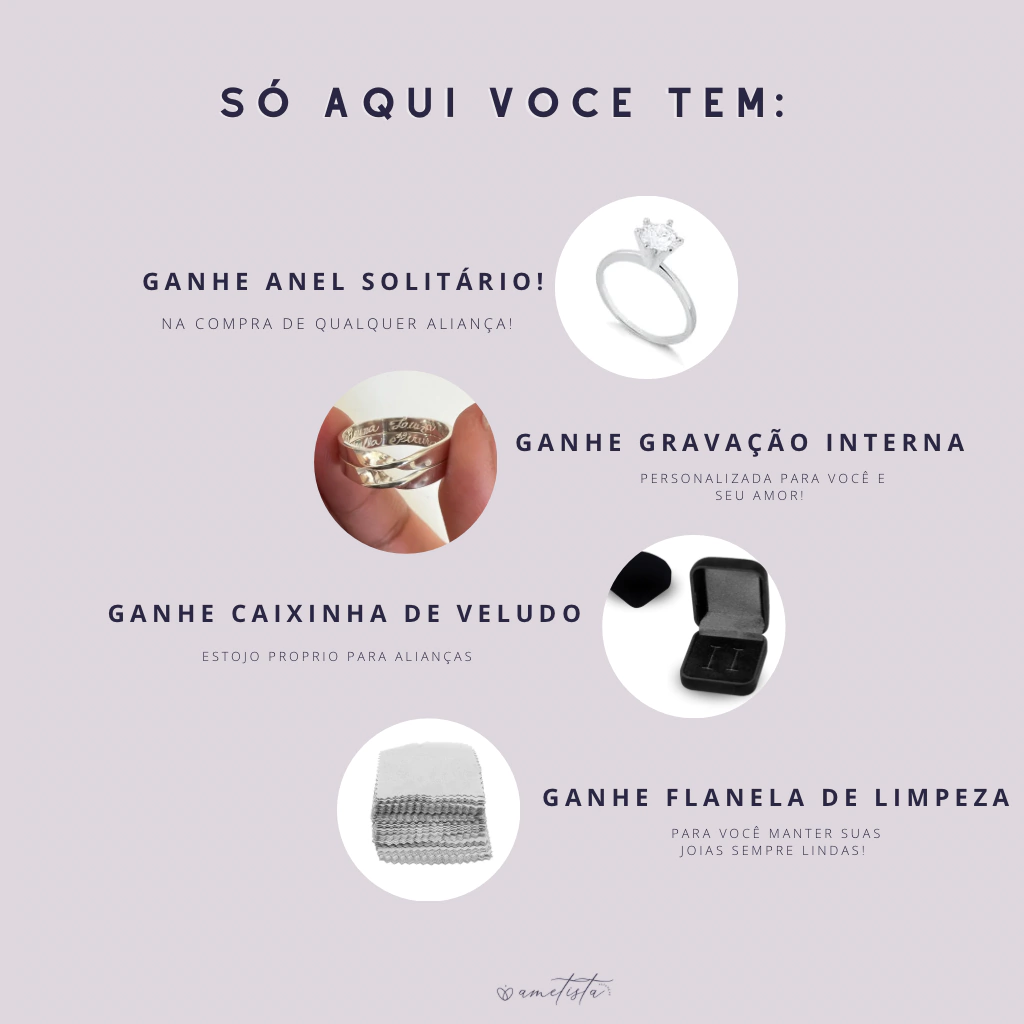 ITENS INCLUSOS: Anel Solitário Brinde Classic - Caixinha de Veludo - Gravações.