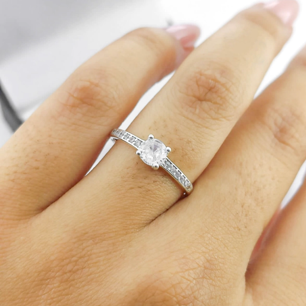 Anel solitário cravejado carrega toda a elegância e sofisticação que voce procura, o presente perfeito pra quem voce ama, o anel IDEAL pro pedido de casamento perfeito, feito em prata 950, 12 pedras em zircônia cravejadas a mão nas laterais e uma pedra também em zircônia central!