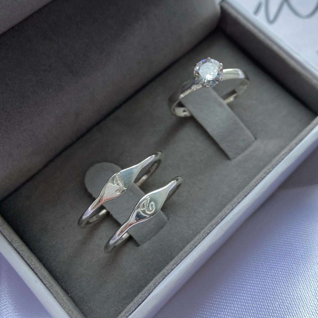 Alianças Chapinha em Prata de lei 950 com Letra Feita a Mão