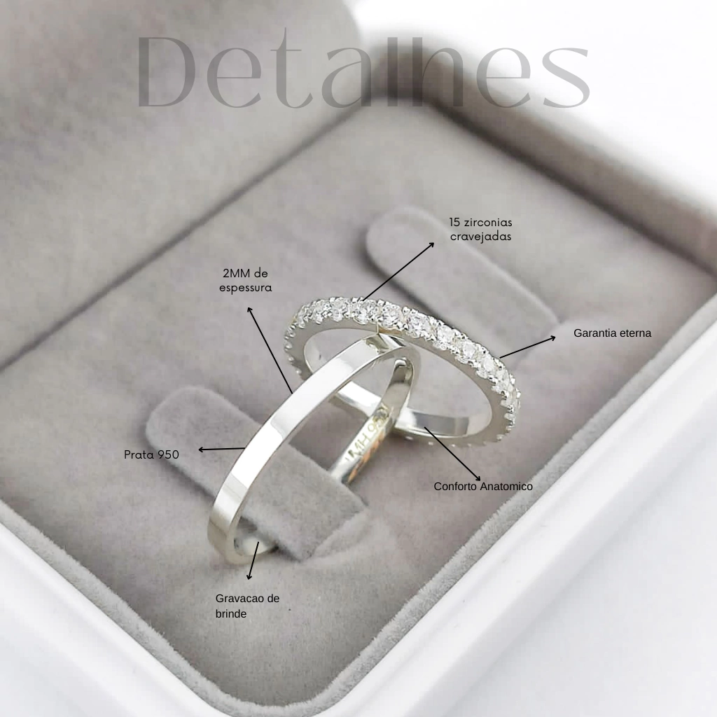 1 Par de Alianças Praga (Prata 950 com 15 zircônias)