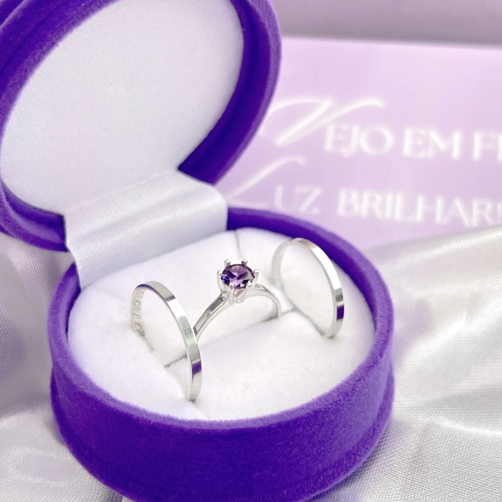 E para tornar esse momento ainda mais especial, ao adquirir o par você recebe um anel solitário roxo exclusivo de brinde.