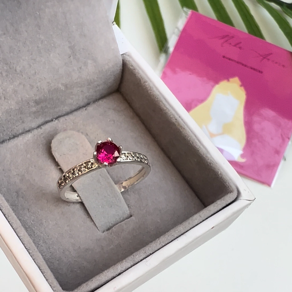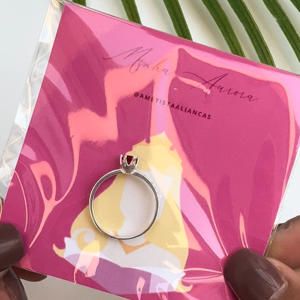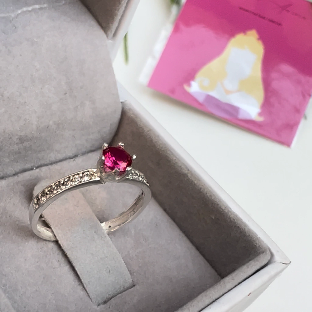 Anel AURORA é feito em PRATA 925, possui pedras laterias brancas + pedra central rosa escuro em zircônia!!