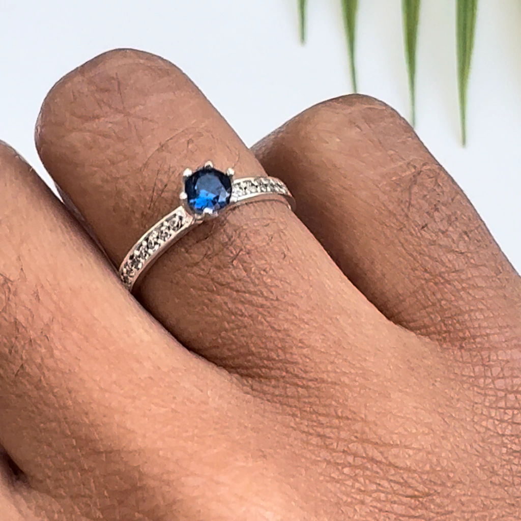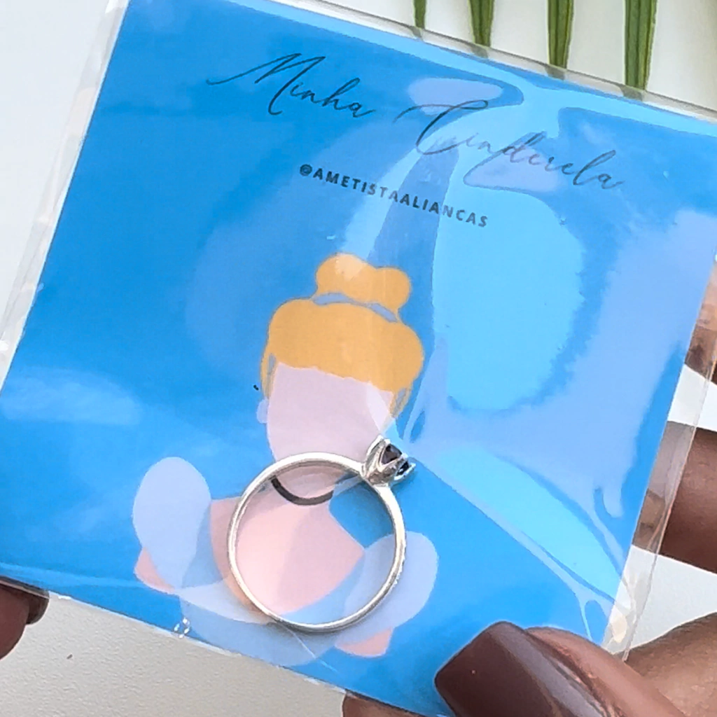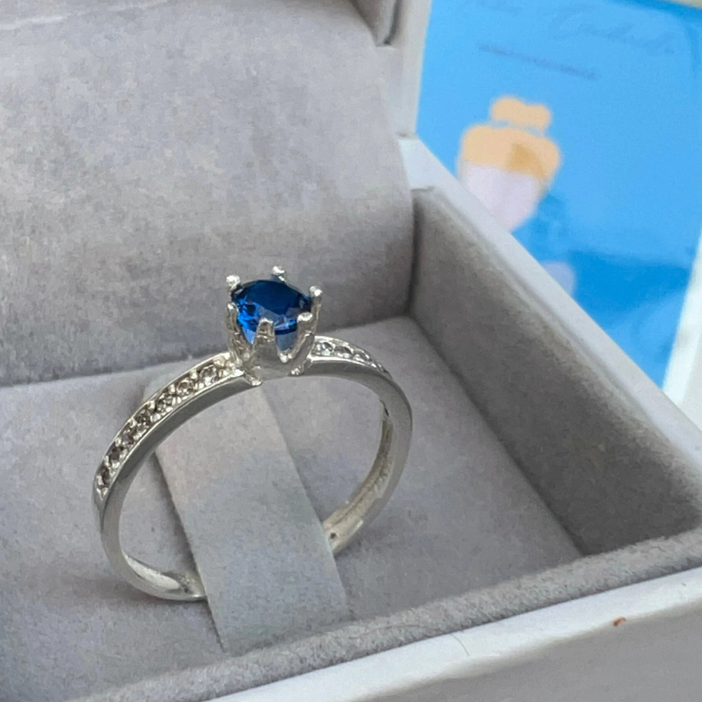 Anel CINDERELA é feito em PRATA 925, possui pedras laterias brancas + pedra central azul em zircônia!!