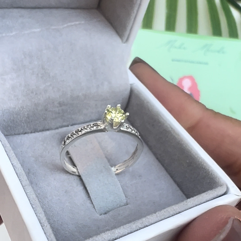 Anel MERIDA é feito em PRATA 925, possui pedras laterias brancas + pedra central verde clara em zircônia!!