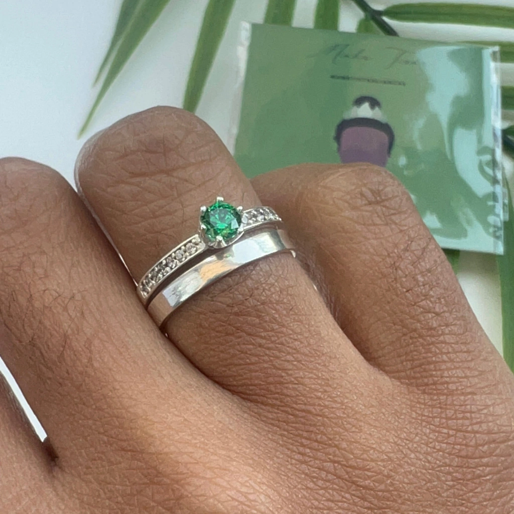 Anel TIANA é feito em PRATA 925, possui pedras laterias brancas + pedra central verde em zircônia!!