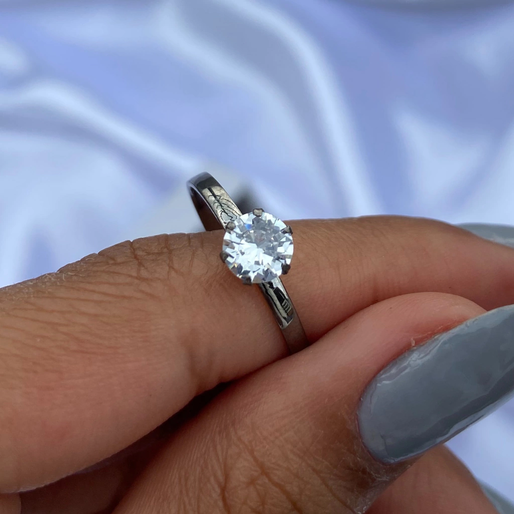 Anel Solitário em Prata 950 Banhado a Rodio negro